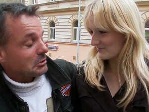 Viejo antiestético se folla a una verdadera puta checa en público