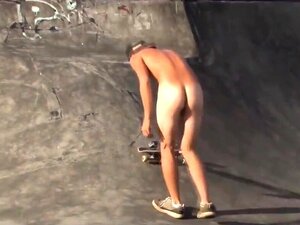 lindo chico skater desnudo en skateboard