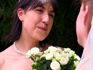 Antes de la boda, trío lésbico con la traviesa novia Whitney Wright. La novia estaba muy preocupada antes de la boda y las damas de honor decidieron ayudarla a relajarse. Lamieron y metieron los dedos suavemente en su coño peludo, ¡ahora está lista para l
