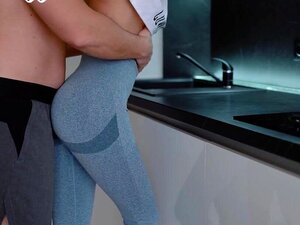 Mi madrastra bonita limpiando la cocina Aprovecha la oportunidad para ver su enorme culo y engañarla para que la agarre por el culo