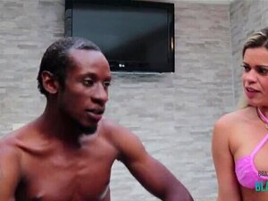 Tentadora rubia seduciendo a un tipo negro y chupando su c. Seductora rubia con un culo sexy dando una gran erección y chupándola con lujuria