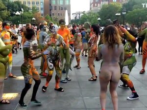 Cuerpo pintado desnudo en las calles,
