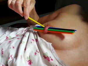 nippleringlover insertando cepillos en piercings estirados para pezones - tetas más grandes de bazookas perforadas - parte dos