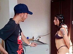 Me como la gran verga de mi hermanastro en nuestro patio trasero