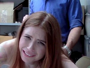 Pelirroja linda. La pelirroja linda intenta convencer al policía del centro comercial de que no robó, así que él la somete a desnudarse para que él le dé por el coño en diferentes poses mientras ella gime de arrepentimiento