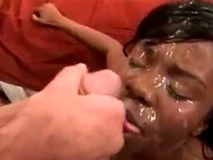 Mini Pipes negra fresca y caliente recibe una crema en su cara bonita. Mini Pipes negra fresca caliente recibe una crema en la cara bonita