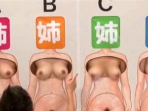 Concursante japonesa recibe chupadas en los pezones. Concursante japonesa es chupada en los pezones en un espectáculo pervertido