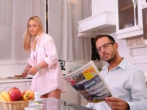 Padrastro folla a la chica y esposa con gran culo. El padrastro Tommy Pistol monta grandes tetas y una pelirroja con gran culo, Skylar Snow, y luego con su madre Silvia Saige tiene sexo en trío BDSM