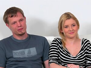 Sexy agente rubia entrevista a una pareja amateur sexy en su oficina y luego les dispara mientras su novia lo chupa y luego ella lo chupa después de todo