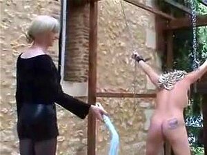 Castigo al aire libre ardiente. Una chica bonita recibe un castigo al aire libre por su coño