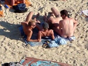 Grupo de chicos follando en la playa