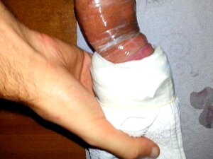 Experimento autohecho con toalla y condón (masturbador)