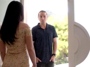 MILF morena tetona quiere que su vecino la folle duro. La puma pequeña de tetas grandes recibe una mamada en las tetas. Él se folla las tetas y hace que la chica caliente se trague su gran polla. Él le come el coño y el culo y le llena el coño con su poll