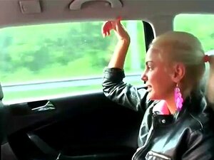 Rubia se folla y le echan un chorrazo en el culo en un taxi falso