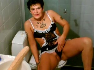 Esposa madura se folla un enorme consolador en el baño