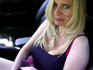 La rubia tetona Tina chupa su polla en el coche y sale a