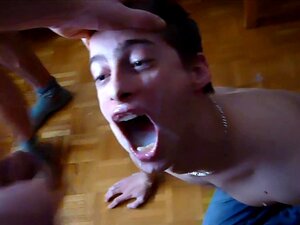 Twink gay chupando y corriéndose bukkake