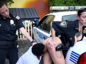 Mujeres asiáticas sucias de la policía frotando la verga cachonda de un convicto