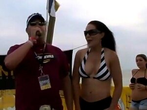 Una competencia de camisetas mojadas en las vacaciones de primavera. En una salvaje fiesta de primavera, estas chicas se vuelven locas hasta las paredes y bailan en el escenario mientras se besan y muestran sus grandes tetas. Es una fiesta de camisetas mo