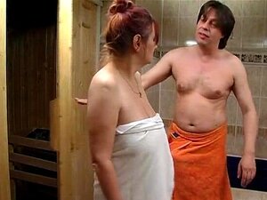 Rubia minx en seducción sexy en la sauna
